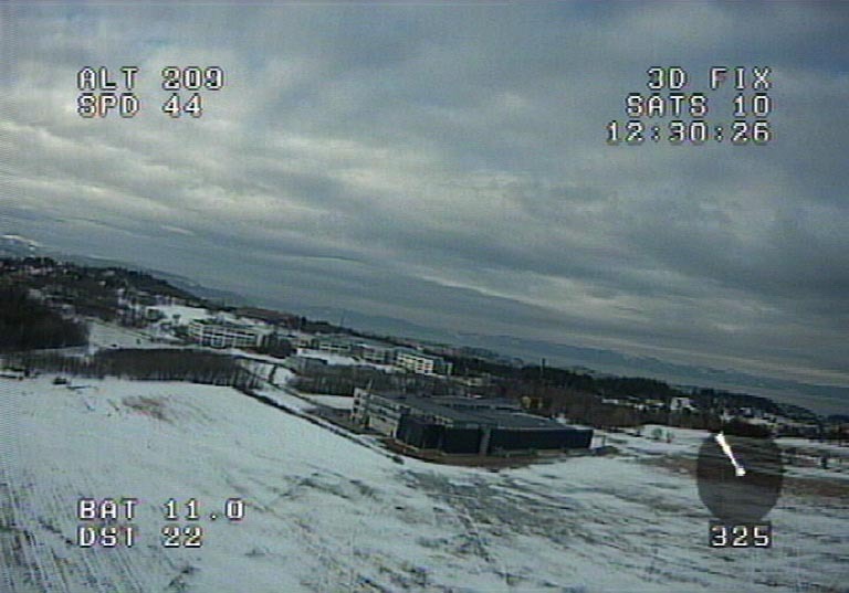 This device allows me to see battery voltage, GPS- and IMU-data, along with other useful information superimposed on the camera picture. As of today, I've also implemented waypoint-support. This means I can store positions, and calculate bearing and distance between these waypoint, which in turn can be easily used as part of an autopilot as well!