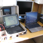Black Widow 2.4 GHz A/V-receiver. The audio is fed into the first laptop, and the video channel is connected to the second laptop and the 5 inch monitor.