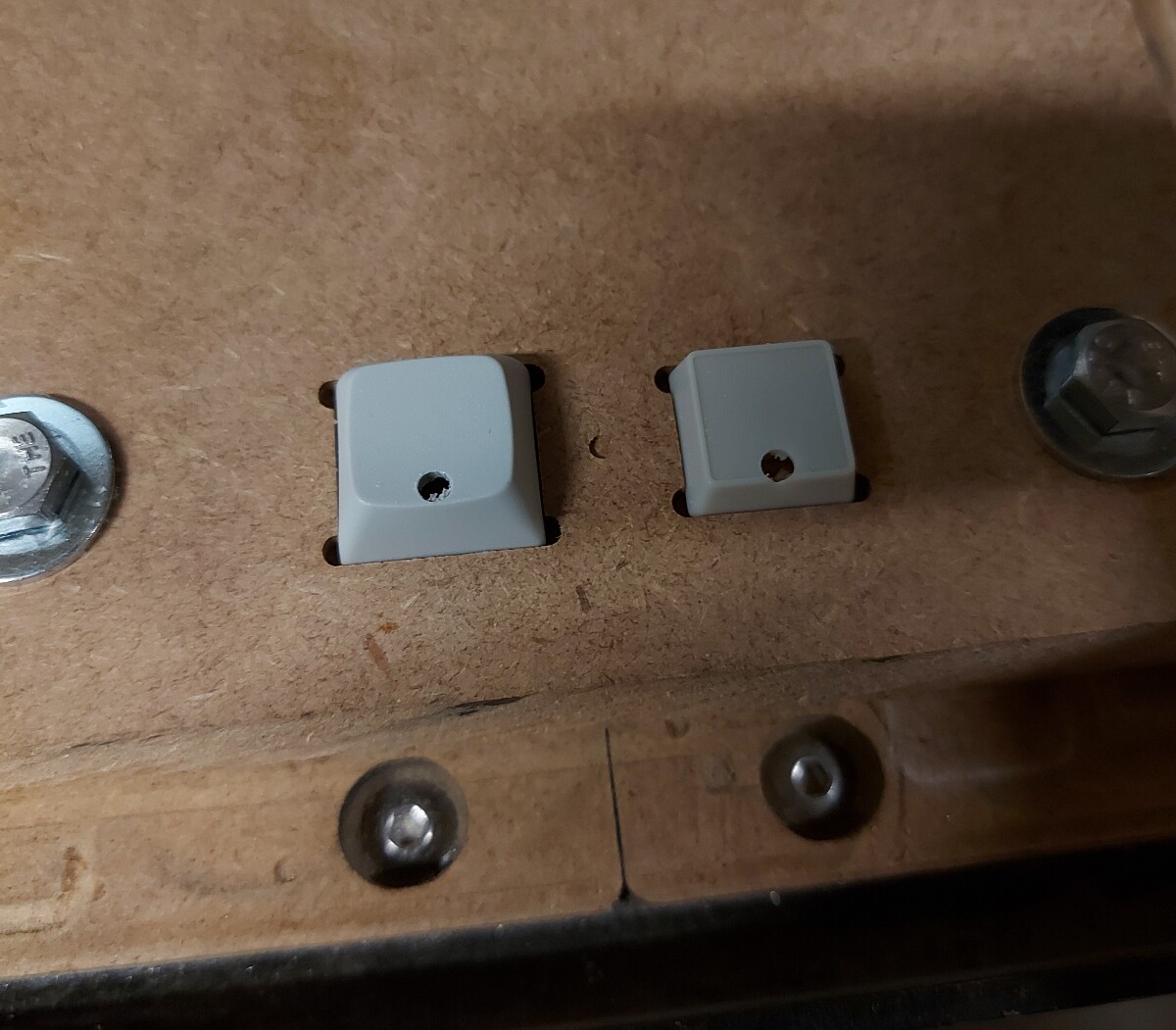 - Insert a keycap into a jig to get it aligned properly and run a program that machines a hole