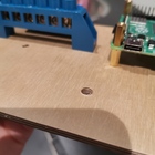 The button panel has an array of 2 x 5 mechanical keyboard buttons with an LED indicator. An MCP23018 is used to interface these buttons and LEDs over I2C, and an additional interrupt line is nice to avoid continously polling for changes over I2C. The labels were printed on paper and then cut to size with a laser cutter.