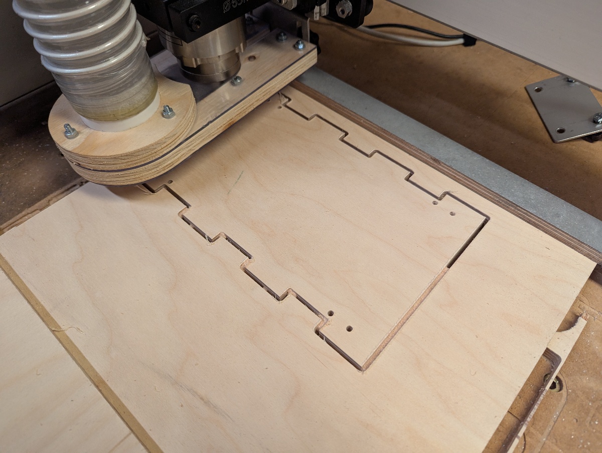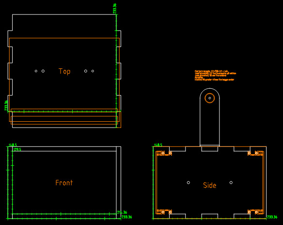 - The four walls were drawn in CAD and routed on my CNC router. The fingers in the box joint were made 0,5 mm longer than necessary on purpose.