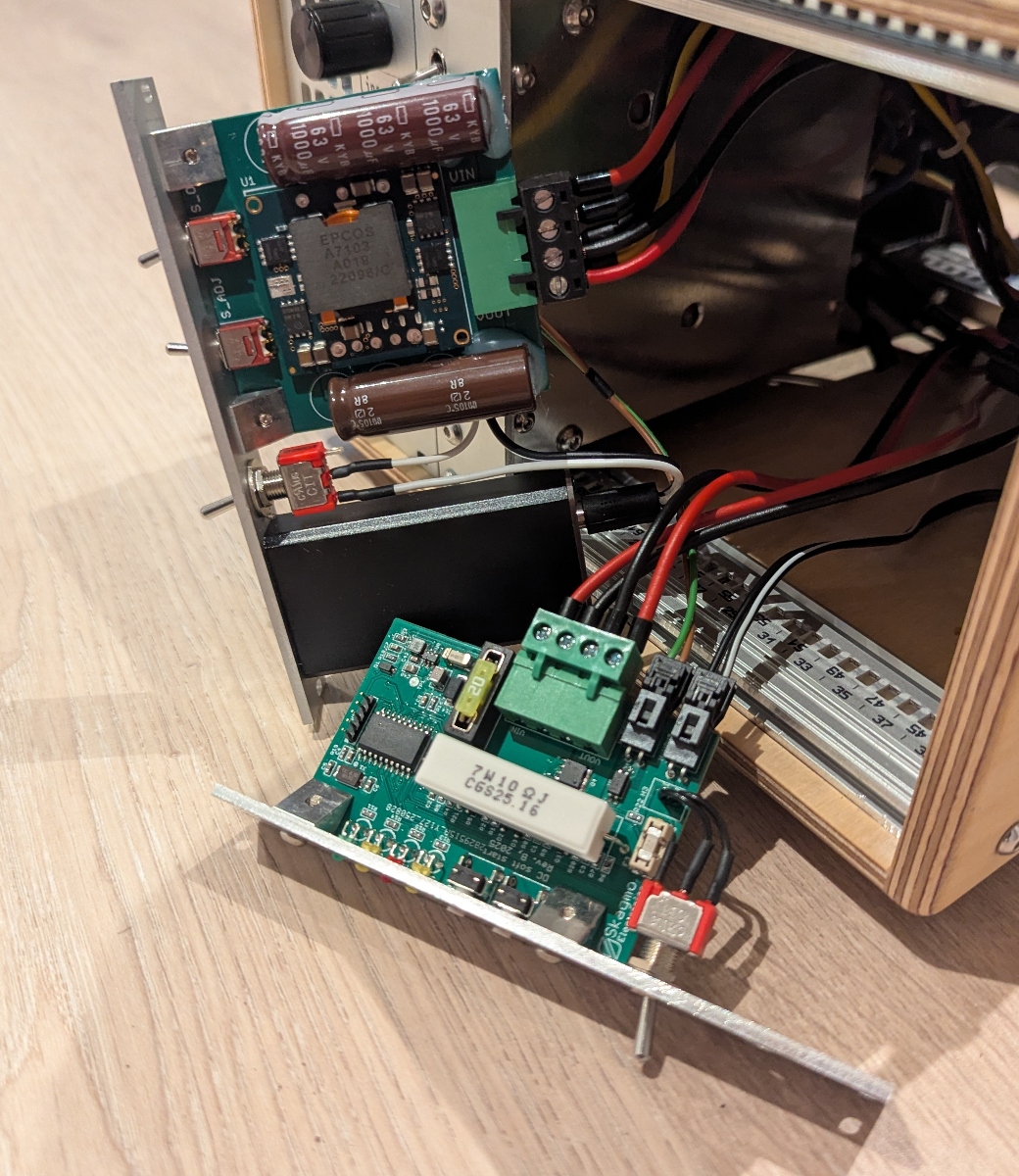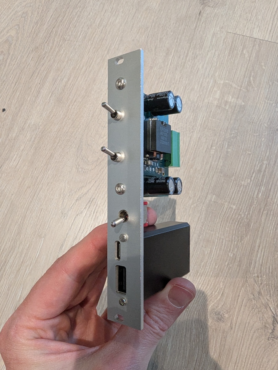 The cabinet is made out of 9 mm birch plywood. The interior dimensions are 42 HP wide and 3U tall - a typical eurorack.