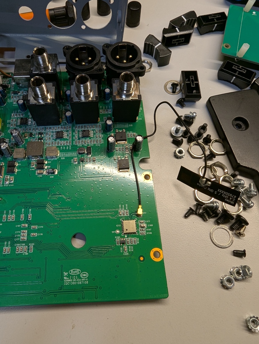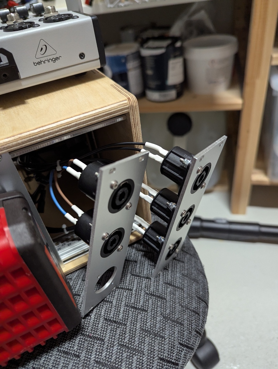 - Volume pots for internal bluetooth receiver and line input (connected to console/mixer)