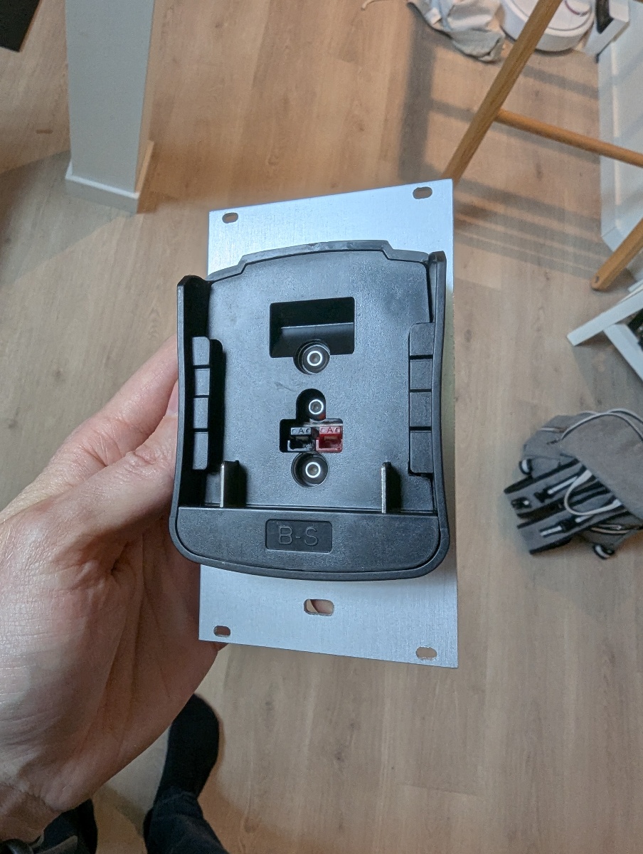 Here are some images from the assembly of the rack. To ensure both external power and battery can't be connected at the same time, I found a purely mechanical solution to the problem - recessing the powerpole connector in the battery mount, so the battery will block the port.