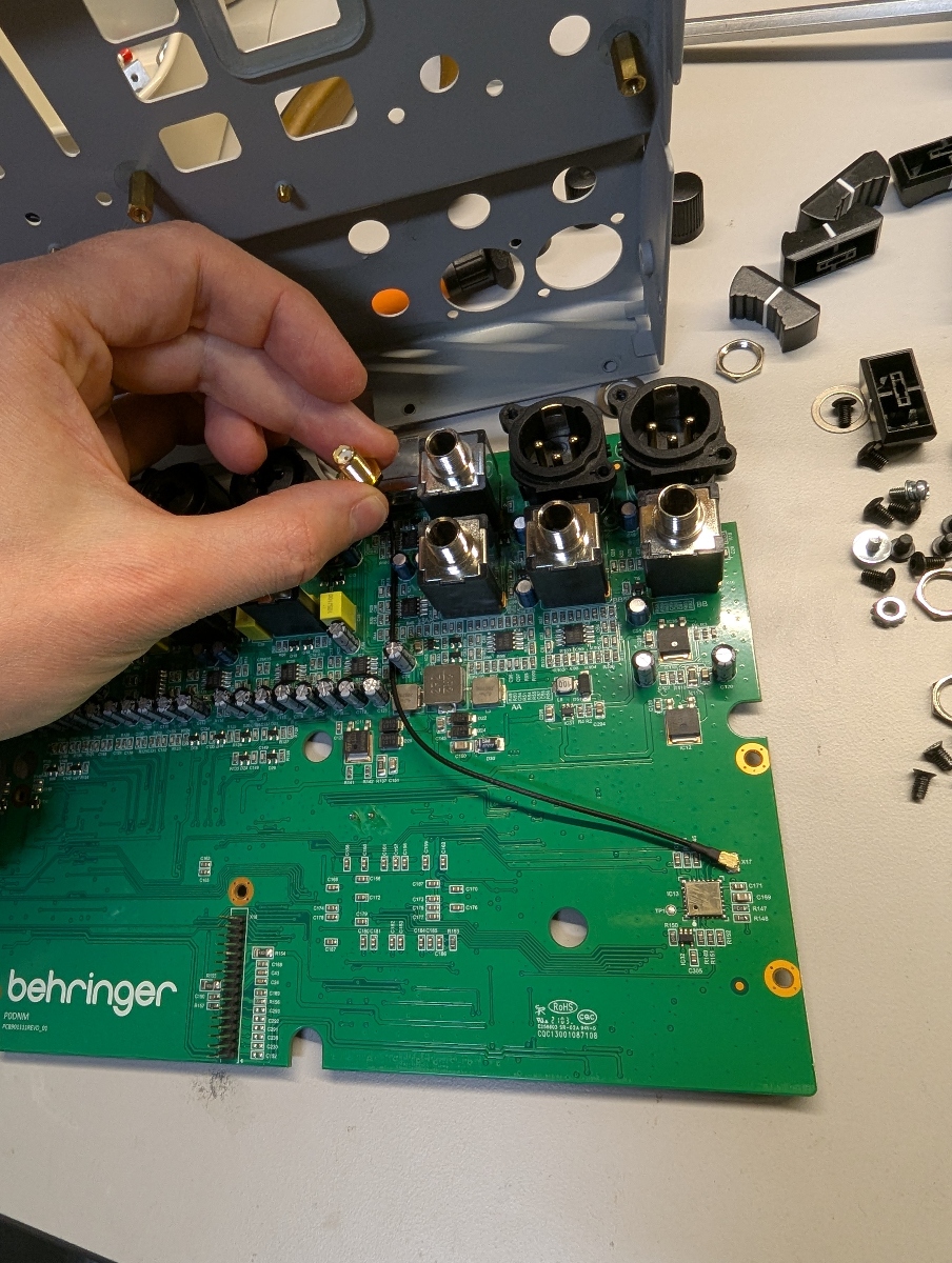- The mixer is mounted with machine screws on top of the cabinet with an aluminium carrying going around it. This construction also protects the mixer mechanically.
